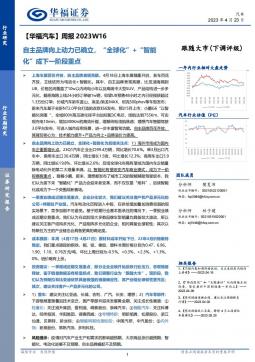 [汽车整车]2023-04-24-华福证券-【华福汽车】周报2023W16:自主品牌向上动力已确立,“全球化”+“智能化”成下一阶段重点-10页(银创产业通www.chanyetong.net)(银创产业通www.chanyetong.net)
