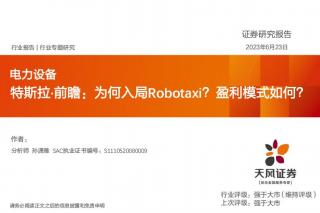 [无人驾驶]2023-06-24-天风证券-电力设备行业专题研究:特斯拉·前瞻:为何入局Robotaxi?盈利模式如何?-17页(银创产业通www.chanyetong.net)(银创产业通www.chanyetong.net)