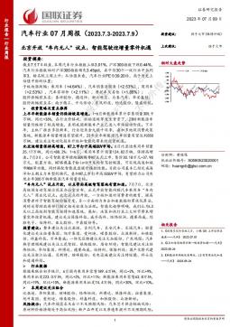 [无人驾驶]2023-07-09-国联证券-汽车行业07月周报:北京开放“车内无人”试点,智能驾驶迎增量零件机遇-20页(银创产业通www.chanyetong.net)(银创产业通www.chanyetong.net)