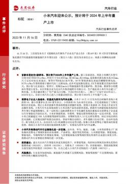 [汽车零部件]2023-11-16-东莞证券-汽车行业事件点评:小米汽车迎来公示,预计将于2024年上半年量产上市-2页(银创产业通www.chanyetong.net)(银创产业通www.chanyetong.net)