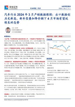 [汽车零部件]2024-04-19-联储证券-汽车行业2024年3月产销数据跟踪:出口数据创历史新高,新车型叠加降价潮下4月市场有望延续良好态势-9页(银创产业通www.chanyetong.net)(银创产业通www.chanyetong.net)