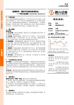 [汽车零部件]2024-04-18-甬兴证券-汽车行业周报:政策呵护,看好汽车板块投资机会-14页(银创产业通www.chanyetong.net)(银创产业通www.chanyetong.net)