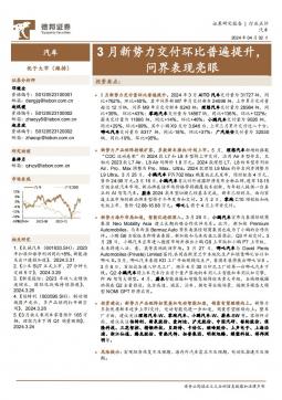 [汽车零部件]2024-04-02-德邦证券-汽车行业点评:3月新势力交付环比普遍提升,问界表现亮眼-2页(银创产业通www.chanyetong.net)(银创产业通www.chanyetong.net)
