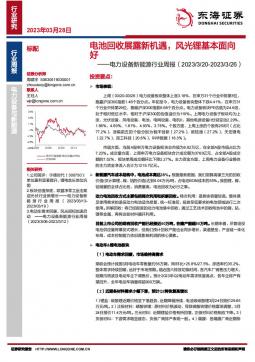 [锂电]2023-03-29-东海证券-电力设备新能源行业周报:电池回收展露新机遇,风光锂基本面向好-41页(银创产业通www.chanyetong.net)(银创产业通www.chanyetong.net)