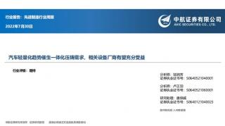 [汽车整车]2022-08-01-中航证券-先进制造行业周报:汽车轻量化趋势催生一体化压铸需求,相关设备厂商有望充分受益-12页(银创产业通www.chanyetong.net)(银创产业通www.chanyetong.net)