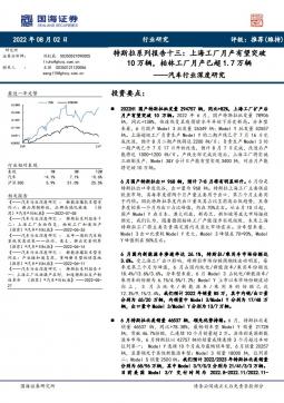[汽车整车]2022-08-03-国海证券-汽车行业深度研究:特斯拉系列报告十三:上海工厂月产有望突破10万辆,柏林工厂月产已超1.7万辆-31页(银创产业通www.chanyetong.net)(银创产业通www.chanyetong.net)