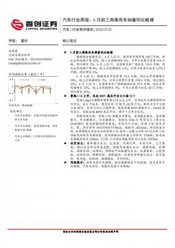 [汽车零部件]2024-07-02-首创证券-汽车行业周报:6月前三周乘用车销量环比略增-9页(银创产业通www.chanyetong.net)(银创产业通www.chanyetong.net)