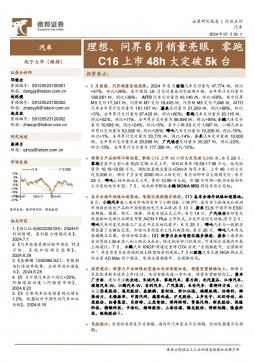 [汽车零部件]2024-07-02-德邦证券-汽车行业点评:理想、问界6月销量亮眼,零跑C16上市48h大定破5k台-2页(银创产业通www.chanyetong.net)(银创产业通www.chanyetong.net)