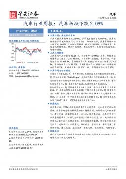 [汽车零部件]2024-07-01-华安证券-汽车行业周报:汽车板块下跌2.09%-12页(银创产业通www.chanyetong.net)
