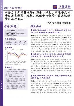 [汽车零部件]2024-07-03-华鑫证券-汽车行业动态研究报告:新势力6月销量点评:蔚来极氪、零跑等交付量创历史新高,理想、鸿蒙智行稳居中国高端新势力品牌前二-14页(银创产业通www.chanyetong.net)(银创产业通www.chanyetong.net)