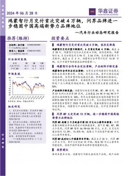 [汽车零部件]2024-06-30-华鑫证券-汽车行业动态研究报告:鸿蒙智行月交付首次突破4万辆,问界品牌进一步稳固中国高端新势力品牌地位-5页(银创产业通www.chanyetong.net)(银创产业通www.chanyetong.net)