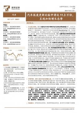 [汽车零部件]2024-07-01-德邦证券-汽车行业周报:汽车报废更新补贴申请达11.3万份,呈现加快增长态势-10页(银创产业通www.chanyetong.net)(银创产业通www.chanyetong.net)