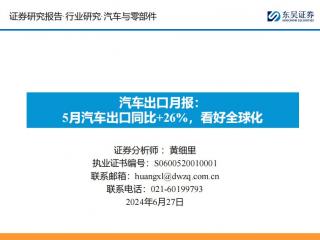 [汽车零部件]2024-06-28-东吴证券-汽车出口月报:5月汽车出口同比+26%,看好全球化-28页(银创产业通www.chanyetong.net)