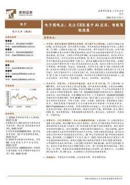 [智能驾驶]2024-01-02-德邦证券-电子周观点:关注CES展中AI应用、智能驾驶进展-3页(银创产业通www.chanyetong.net)(银创产业通www.chanyetong.net)