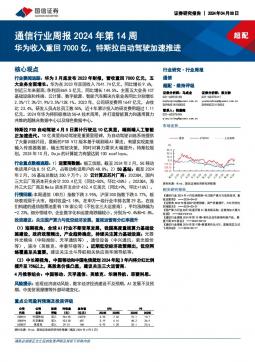 [智能驾驶]2024-04-08-国信证券-通信行业周报2024年第14周:华为收入重回7000亿,特斯拉自动驾驶加速推进-30页(银创产业通www.chanyetong.net)(银创产业通www.chanyetong.net)
