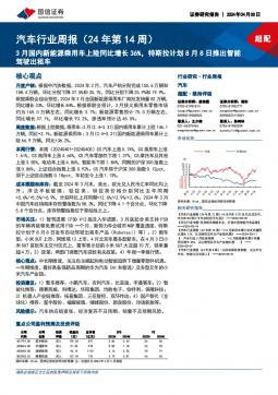 [智能驾驶]2024-04-08-国信证券-汽车行业周报(24年第14周):3月国内新能源乘用车上险同比增长36%,特斯拉计划8月8日推出智能驾驶出租车-35页(银创产业通www.chanyetong.net)