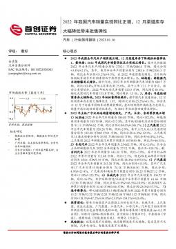 [汽车零部件]2023-01-18-首创证券-汽车行业简评报告:2022年我国汽车销量实现同比正增,12月渠道库存大幅降低带来批售弹性-11页(银创产业通www.chanyetong.net)(银创产业通www.chanyetong.net)