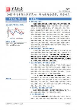 [汽车零部件]2023-01-28-华安证券-2023年汽车行业投资策略:结构化趋势显著,顺势而上-27页(银创产业通www.chanyetong.net)(银创产业通www.chanyetong.net)