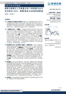 [汽车整车]2023-06-02-东吴证券-汽车行业点评报告:新势力跟踪之5月销量点评-9家新势力合计交付环比+13%,理想-埃安-比亚迪再创新高-9页(银创产业通www.chanyetong.net)