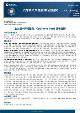[汽车零部件]2024-09-30-国金证券-汽车及汽车零部件行业研究:金九银十终端强劲,Optimous Gen3发布在即-12页(银创产业通www.chanyetong.net)