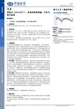 [汽车零部件]2024-09-30-华福证券-汽车行业周观点:宏观政策强刺激,汽车行情不缺席-4页(银创产业通www.chanyetong.net)(银创产业通www.chanyetong.net)