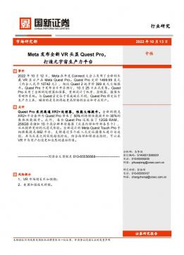 [智能硬件]2022-10-14-国新证券公司-电子:Meta发布全新VR头显Quest Pro,打造元宇宙生产力平台-2页(银创产业通www.chanyetong.net)