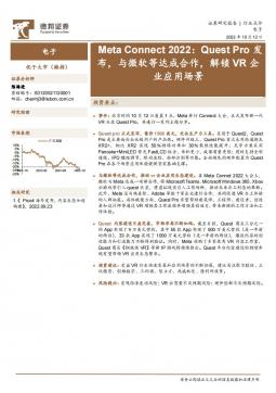 [智能硬件]2022-10-13-德邦证券-电子:Meta Connect2022:Quest Pro发布,与微软等达成合作,解锁VR企业应用场景-2页(银创产业通www.chanyetong.net)