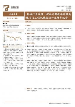 [通用设备]2024-07-09-德邦证券-机械行业周报:挖机内销数据持续高增,关注工程机械板块行业修复机会-8页(银创产业通www.chanyetong.net)(银创产业通www.chanyetong.net)