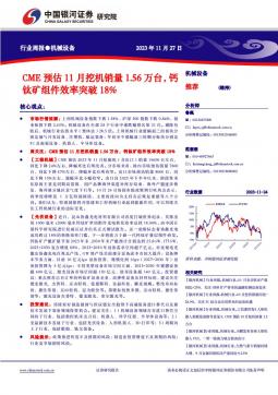 [通用设备]2023-11-28-中国银河-机械设备行业周报:CME预估11月挖机销量1.56万台,钙钛矿组件效率突破18%-22页(银创产业通www.chanyetong.net)