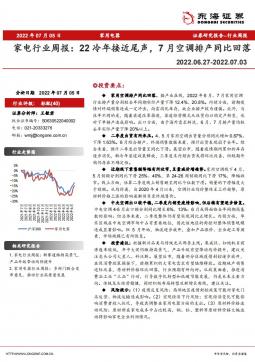 [家电家居]2022-07-05-东海证券-家电行业周报:22冷年接近尾声,7月空调排产同比回落-9页(银创产业通www.chanyetong.net)(银创产业通www.chanyetong.net)