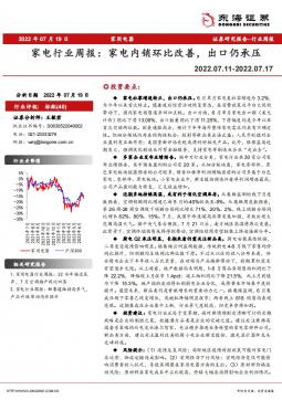 [家电家居]2022-07-19-东海证券-家电行业周报:家电内销环比改善,出口仍承压-9页(银创产业通www.chanyetong.net)(银创产业通www.chanyetong.net)