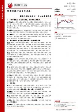 [家电家居]2023-10-13-国联证券-家用电器行业9月月报:家电外销持续向好,出口链修复明显-20页(银创产业通www.chanyetong.net)(银创产业通www.chanyetong.net)