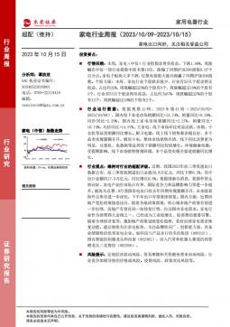 [家电家居]2023-10-16-东莞证券-家电行业周报:家电出口向好,关注相关受益公司-15页(银创产业通www.chanyetong.net)(银创产业通www.chanyetong.net)
