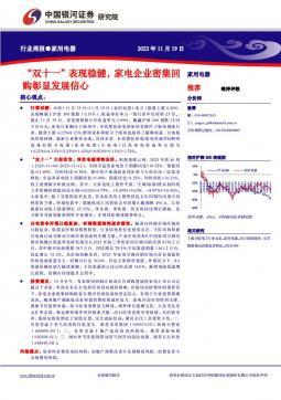 [家电家居]2023-11-20-中国银河-家用电器行业周报:“双十一”表现稳健,家电企业密集回购彰显发展信心-11页(银创产业通www.chanyetong.net)(银创产业通www.chanyetong.net)