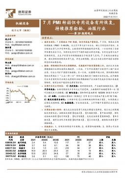 [通用设备]2022-08-07-德邦证券-机械设备第39期周观点:7月PMI转弱但专用设备有所恢复,持续推荐船舶、油服行业-13页(银创产业通www.chanyetong.net)(银创产业通www.chanyetong.net)