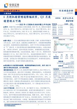 [通用设备]2022-07-11-安信证券-工程机械2022年6月挖机行业快评暨上半年总结:6月挖机销量增速降幅收窄,Q3月度销量转正可期-6页(银创产业通www.chanyetong.net)(银创产业通www.chanyetong.net)