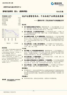 [家电家居]2022-06-16-国金证券-家电行业研究月报:奥维云网5月洗衣机&干衣机数据点评-洗护电器暂有承压,干衣机国产品牌表现亮眼-7页(银创产业通www.chanyetong.net)