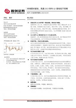 [电子]2023-02-07-首创证券-电子行业简评报告:终端需求疲软,高通2023财年Q1营收低于预期-11页(银创产业通www.chanyetong.net)(银创产业通www.chanyetong.net)