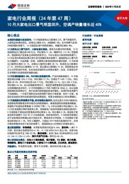 [家电家居]2024-11-25-国信证券-家电行业周报(24年第47周):10月大家电出口景气明显回升,空调产销量增长近40%-13页(银创产业通www.chanyetong.net)(银创产业通www.chanyetong.net)