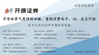 [消费电子]2024-05-07-开源证券-电子行业2024年中期投资策略:半导体景气度持续回暖,重视消费电子、AI、自主可控-55页(银创产业通www.chanyetong.net)(银创产业通www.chanyetong.net)