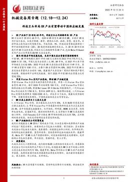 [通用设备]2023-12-24-国联证券-机械设备周专题:科技巨头布局XR产业有望带动中国供应链发展-15页(银创产业通www.chanyetong.net)(银创产业通www.chanyetong.net)