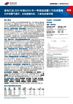 [家电家居]2024-05-13-国信证券-家电行业2023年报&2024年一季报综述暨5月投资策略:内外销景气提升,白电稳健向好、小家电经营回暖-24页(银创产业通www.chanyetong.net)
