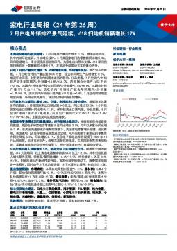 [家电家居]2024-07-01-国信证券-家电行业周报(24年第26周):7月白电外销排产景气延续,618扫地机销额增长17%-15页(银创产业通www.chanyetong.net)