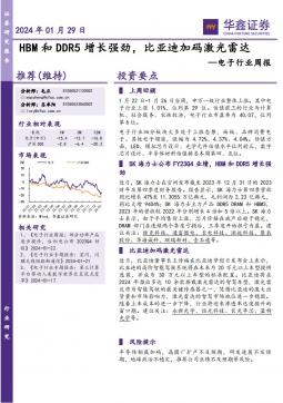 [电子]2024-01-29-华鑫证券-电子行业周报:HBM和DDR5增长强劲,比亚迪加码激光雷达-42页(银创产业通www.chanyetong.net)(银创产业通www.chanyetong.net)