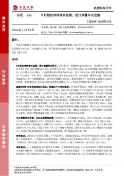 [工程机械]2024-06-14-东莞证券-工程机械行业跟踪点评:5月挖机内销增长延续,出口销量环比改善-5页(银创产业通www.chanyetong.net)(银创产业通www.chanyetong.net)