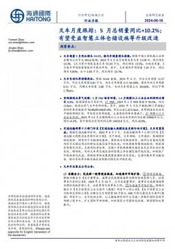 [工程机械]2024-06-19-海通国际-叉车月度跟踪:5月总销量同比+10.2%;有望受益智慧立体仓储设施等升级改造-13页(银创产业通www.chanyetong.net)(银创产业通www.chanyetong.net)