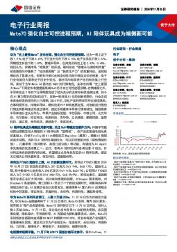 [电子]2024-11-26-国信证券-电子行业周报:Mate70强化自主可控进程预期,AI陪伴玩具成为端侧新可能-9页(银创产业通www.chanyetong.net)(银创产业通www.chanyetong.net)