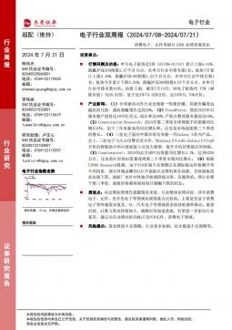 [消费电子]2024-07-21-东莞证券-电子行业双周报:消费电子、元件等细分24H1业绩表现突出-9页(银创产业通www.chanyetong.net)(银创产业通www.chanyetong.net)