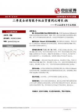 [消费电子]2024-07-22-中山证券-电子行业周报:二季度全球智能手机出货量同比增长6%-11页(银创产业通www.chanyetong.net)(银创产业通www.chanyetong.net)