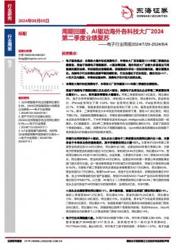 [电子]2024-08-05-东海证券-电子行业周报:周期回暖、AI驱动海外各科技大厂2024第二季度业绩复苏-15页(银创产业通www.chanyetong.net)(银创产业通www.chanyetong.net)